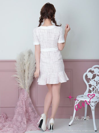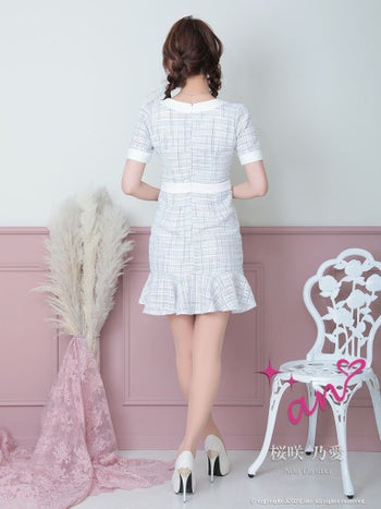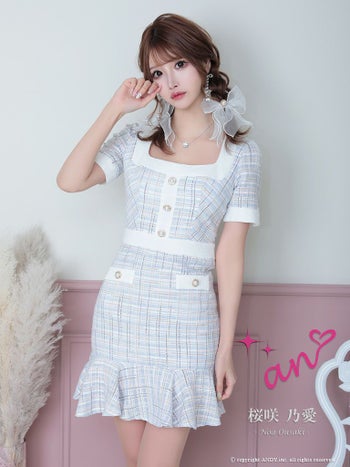 キャバドレス フレアミニドレス an アン ツイード チェック スクエアネック パールボタン マーメイド 半袖