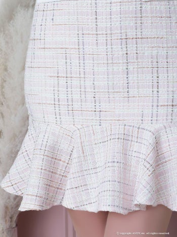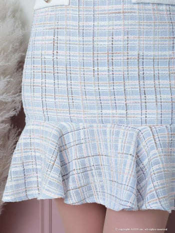 3. 【an/アン】ツイード チェック スクエアネック パールボタン 裾フリル 半袖 フレアミニドレス(aoc3428)