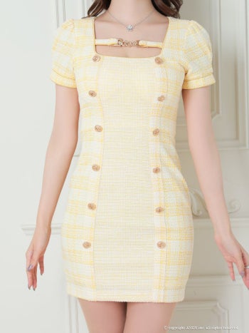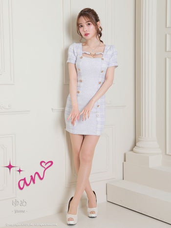 キャバドレス an アン ダブルボタン ツイード パフスリーブ 半袖 タイトミニドレス