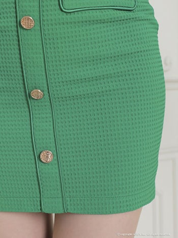 ノースリーブ セットアップ チェーン ワッフル バックリボン フロントジップ タイトミニドレスのデティール3