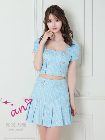 キャバドレス an アン ゴールドボタン ツイード プリーツ パフスリーブ セットアップ 半袖 フレアミニドレス