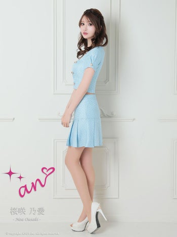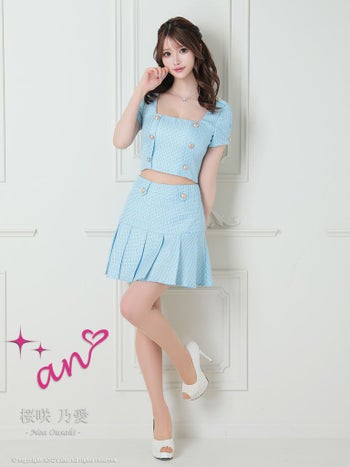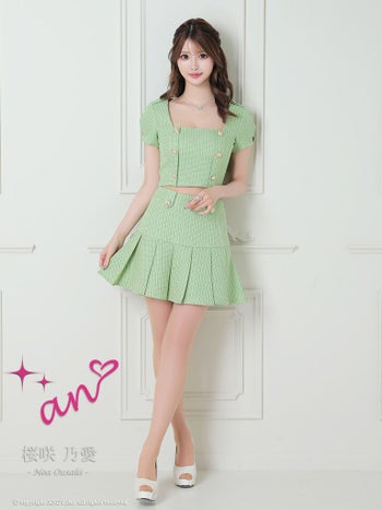キャバドレス an アン パフスリーブ プリーツ ゴールドボタン ツイード セットアップ 半袖 フレアミニドレス