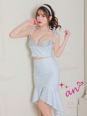 3. 【an/アン】マーメイド チェック柄 セットアップ ショルダーリボン キャミソール ロングテールドレス(aoc3470)