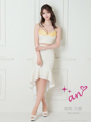 XSあり!谷間を彩る高級セクシードレス♪ 【an/アン】マーメイド チェック柄 セットアップ ショルダーリボン キャミソール ロングテールドレス(aoc3470)