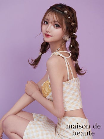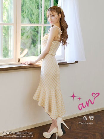 an アン マーメイド チェック柄 セットアップ ショルダーリボン キャミソール ロングテールドレス