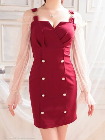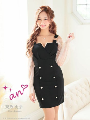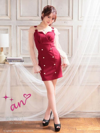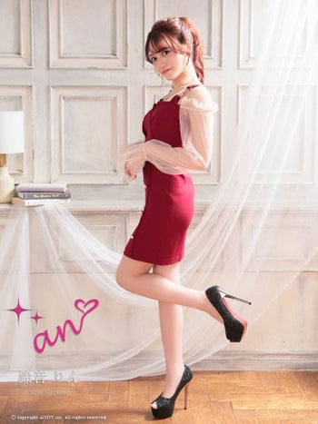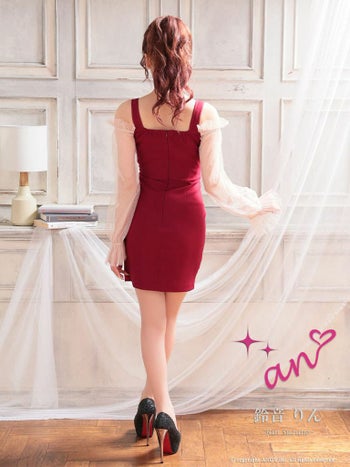 キャバドレス タイトミニドレス an アン 透け感 ガーリー 長袖 ハイウエスト タイトミニドレス