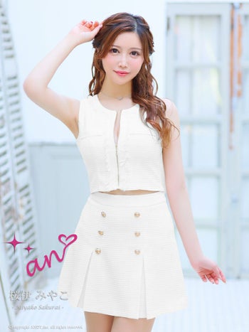 キャバドレス an アン セットアップ フロントジップ ツイード チェック柄 ノースリーブ フレアミニドレス