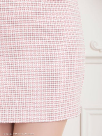 4. 【an/アン】チェーン パールボタン ツイード チェック柄 セットアップ ノースリーブ タイトミニドレス(aoc3604)