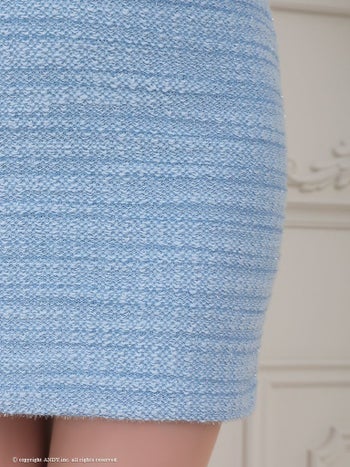 チェーン フロントジップ ショルダーリボン ツイード ゴールドボタン タイトミニドレスのメイン画像3