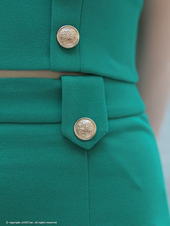 スリット セットアップ ゴールドボタン スクエアネック 半袖 タイトミニドレスの詳細画像3