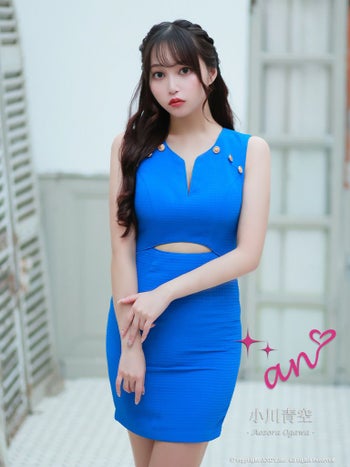 キャバドレス ミニドレス an アン ワンカラー リボン カットアウト 金ボタン スリットネック ノースリーブ タイトミニドレス