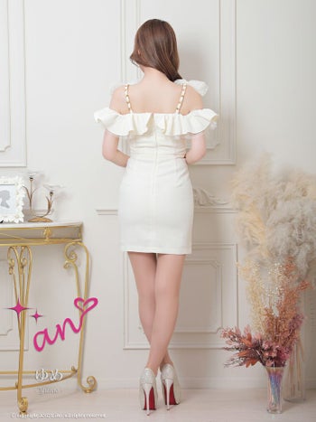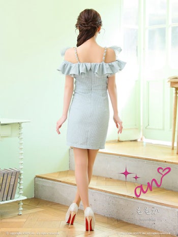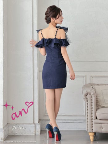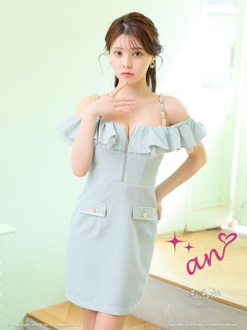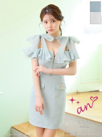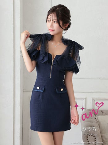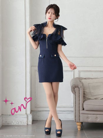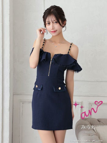 キャバドレス タイトミニドレス an アン ジップデザイン ツイード リボン キャミソール チェーン