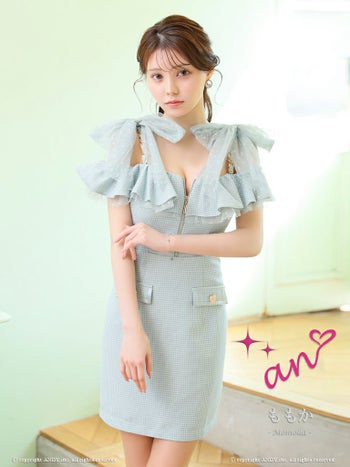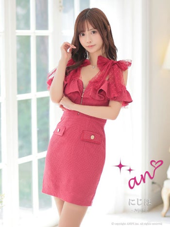 キャバドレス タイトミニドレス an アン キャミソール リボン ツイード ジップデザイン チェーン