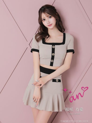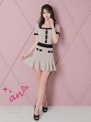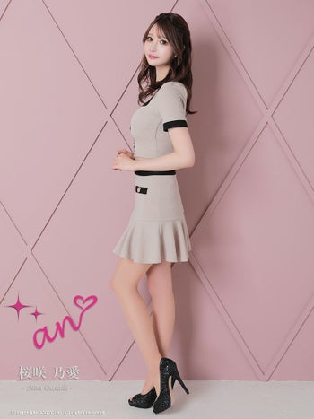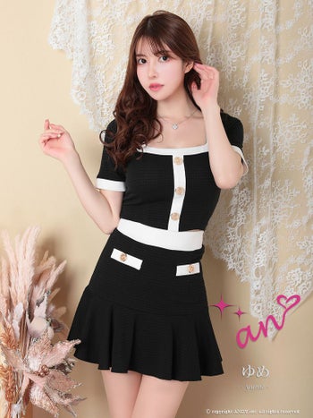 キャバドレス フレアミニドレス an アン セットアップ プリーツ バイカラー 飾りポケット 半袖