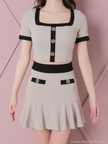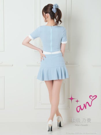 3. 【an/アン】セットアップ プリーツ バイカラー 飾りポケット 半袖 フレアミニドレス(aoc3679)