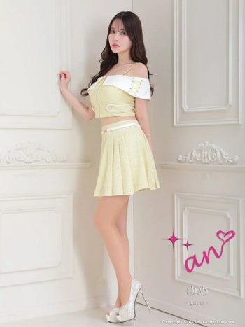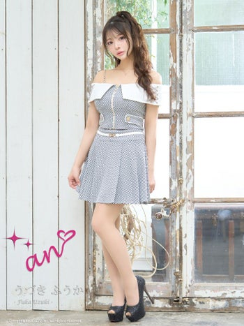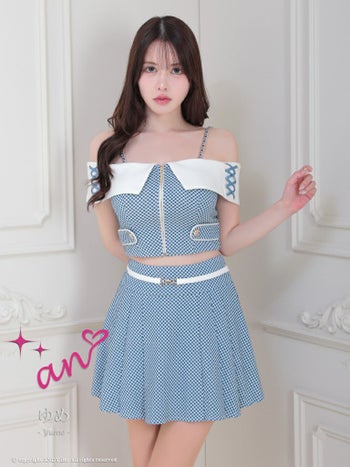キャバドレス ミニドレス an アン セットアップ チェック柄 オフショルダー ジップデザイン ベルト  スピンドル チェーン プリーツ フレアミニドレス