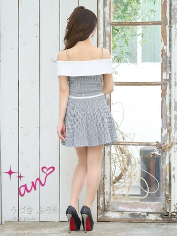 キャバドレス ミニドレス an アン オフショルダー チェック柄 セットアップ ジップデザイン ベルト  スピンドル チェーン プリーツ フレアミニドレス