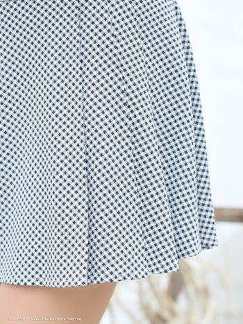 4. 【an/アン】オフショルダー チェック柄 セットアップ ジップデザイン ベルト スピンドル チェーン プリーツ フレアミニドレス(aoc3691)