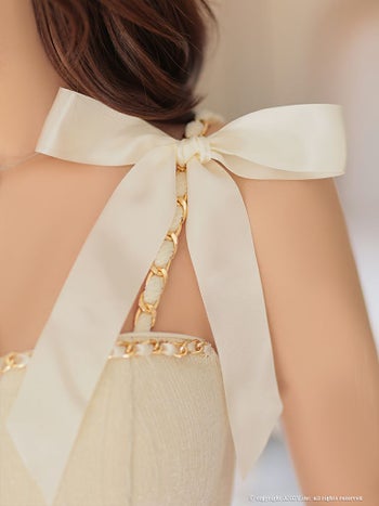 リボン ジップデザイン チェーン 飾りポケット 切り替え キャミソール タイトミニドレスのメイン画像4