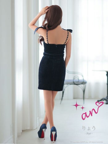 キャバドレス ミニドレス an アン リボン ジップデザイン チェーン 飾りポケット 切り替え キャミソール タイトミニドレス