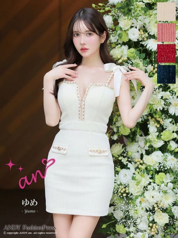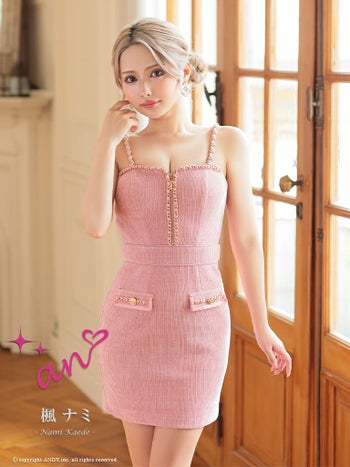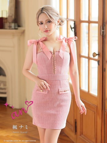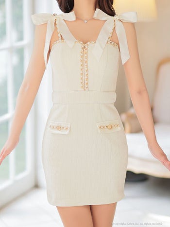 キャバドレス ミニドレス an アン ジップデザイン チェーン リボン 飾りポケット 切り替え キャミソール タイトミニドレス