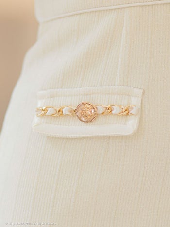 ジップデザイン チェーン リボン 飾りポケット 切り替え キャミソール タイトミニドレスのメイン画像8