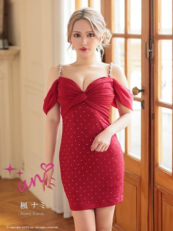 キャバドレス タイトミニドレス an アン キャミソール ワンカラー シフォン ビジュー オフショルダー