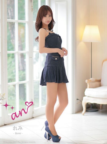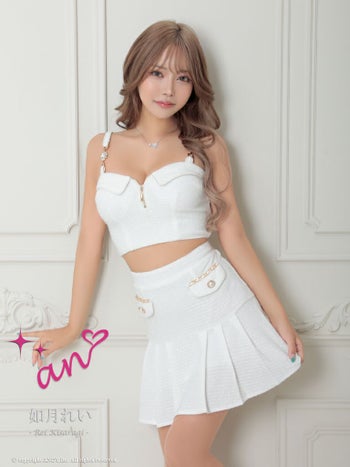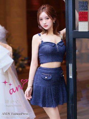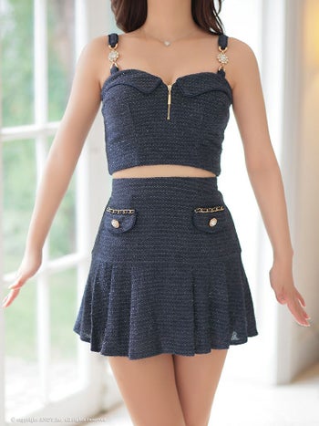 キャバドレス フレアミニドレス an アン セットアップ ツイード フレア プリーツ ビジュー キャミソール ジップデザイン