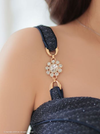 4. 【an/アン】セットアップ ツイード フレア プリーツ ビジュー キャミソール ジップデザイン フレアミニドレス(aoc3753)