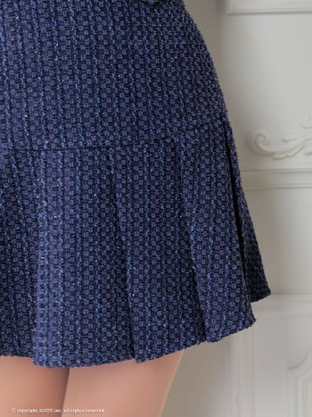 XSあり!お腹のチラ見えがsexy♡ 【an/アン】パールチェーン 飾りボタン ツイード セットアップ プリーツ 半袖 フレアミニドレス(aoc3757)