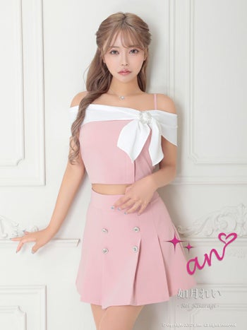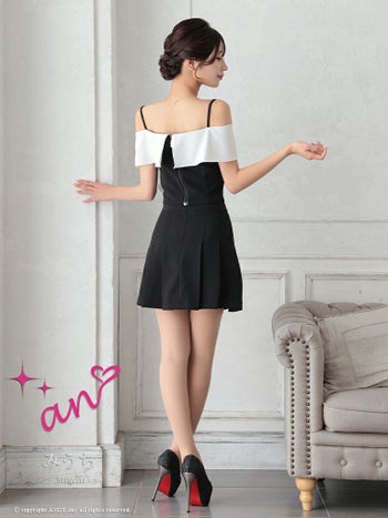 キャバドレス ミニドレス an アン セットアップ バイカラー リボン フレア プリーツ バックル オフショル フレアミニドレス