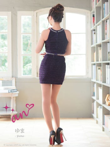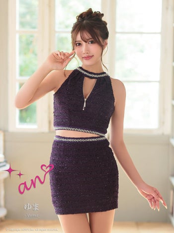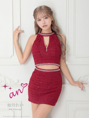 キャバドレス ミニドレス an アン ジップデザイン ワンカラー セットアップ ビジュー スパンコール ホルターネック タイトミニドレス