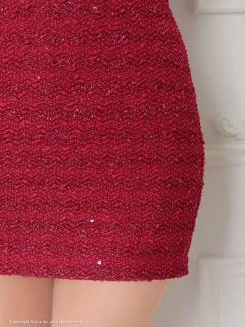 ジップデザイン ワンカラー セットアップ ビジュー スパンコール ホルターネック タイトミニドレスのメイン画像4