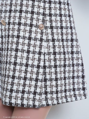 半袖 ツイード チェック柄 ゴールドボタン チェーン フレアミニドレスのメイン画像1