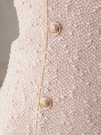 半袖 スクエアネック パフスリーブ 飾りボタン ビジューチェーン タイトミニドレスのメイン画像3