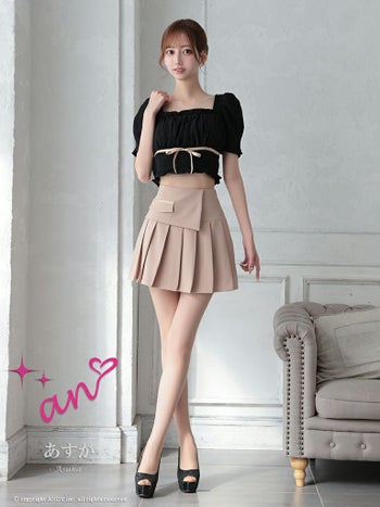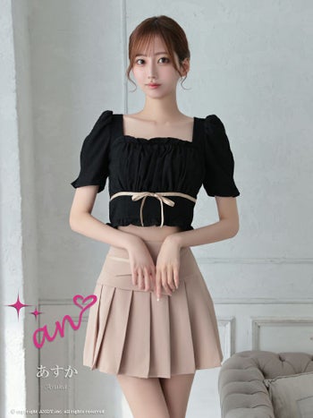 キャバドレス ミニドレス an アン バイカラー セットアップ プリーツ リボン パフスリーブ 半袖 フレアミニドレス