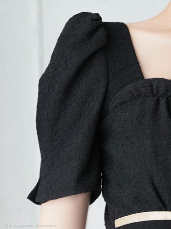 バイカラー セットアップ プリーツ リボン パフスリーブ 半袖 フレアミニドレスの詳細画像2