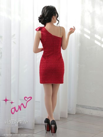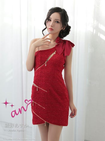キャバドレス ミニドレス an アン バックル ジップデザイン ビジュー リボン チェーン ワンショルダー タイトミニドレス
