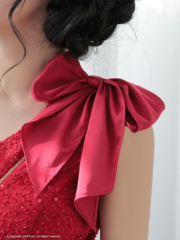 3. 【an/アン】バックル ジップデザイン ビジュー リボン チェーン ワンショルダー タイトミニドレス(aoc3785)