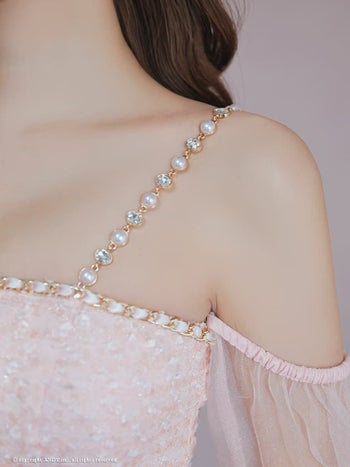 ガーリー 肩あき ジップデザイン 長袖 スパンコール シフォンスリーブ リボン チェーン タイトミニドレスの詳細画像2