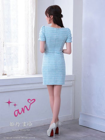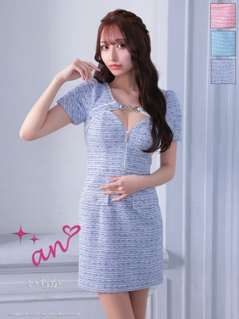 キャバドレス タイトミニドレス an アン ハートボタン ツイード 半袖 ジップデザイン 飾りポケット カットデザイン