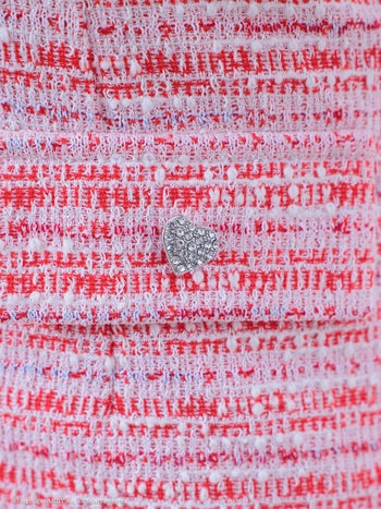 ハートボタン ツイード 半袖 ジップデザイン 飾りポケット カットデザイン タイトミニドレスの詳細画像2