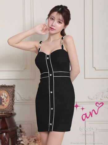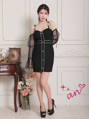 3. 【an/アン】ハートボタン リボン 長袖 肩あき タイトミニドレス(aoc3842)