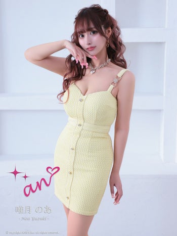 キャバドレス タイトミニドレス an アン ハートボタン リボン 長袖 肩あき