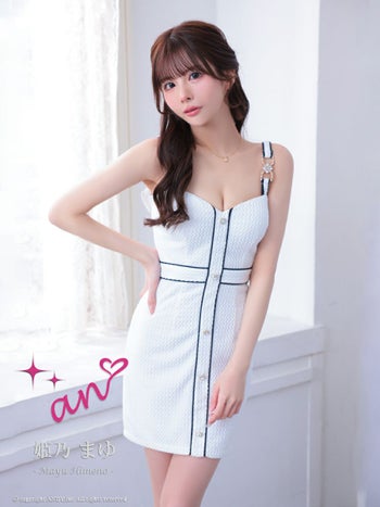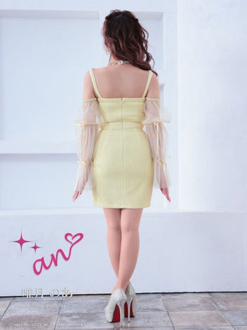 キャバドレス タイトミニドレス an アン リボン ハートボタン 肩あき 長袖