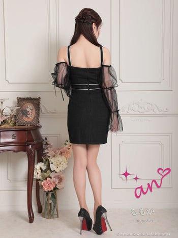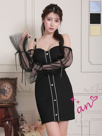 XSあり!チュールスリーブの取り外しができる♩ 【an/アン】リボン ハートボタン 肩あき 長袖 タイトミニドレス(aoc3842)