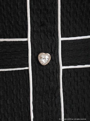 リボン ハートボタン チュールスリーブ ノースリーブ タイトミニドレスの詳細画像2