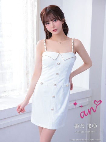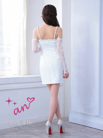 キャバドレス an 長袖 襟デザイン ワンカラー 肩あき シースルー フェイクポケット ボタン タイトミニドレス