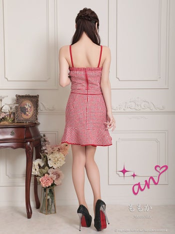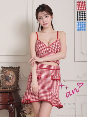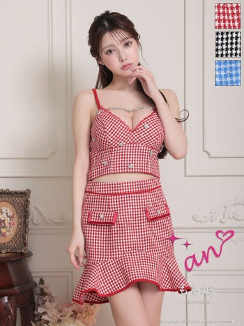 キャバドレス フレアミニドレス an アン ハートボタン ツイード セットアップ 飾りポケット キャミソール チェーン