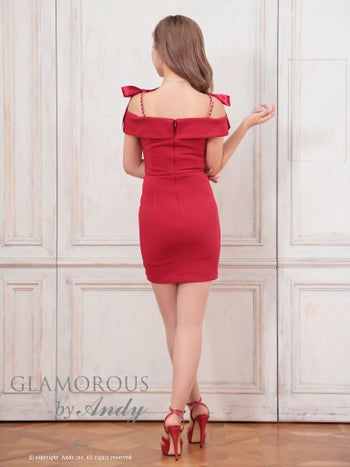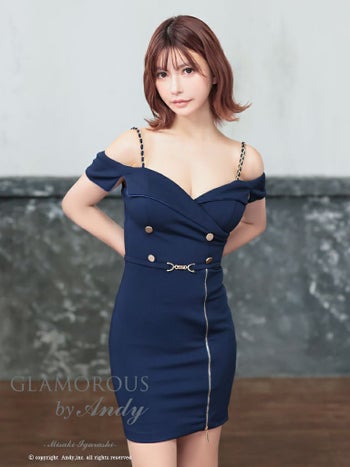 キャバドレス タイトミニドレス GLAMOROUS グラマラス ジップデザイン リボン オフショル キャミソール チェーン
